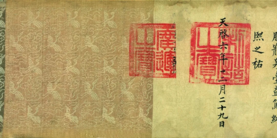 | 清道光、咸丰年颁发给奎定、玉刚的“世袭罔替”手绘龙边诰命圣旨