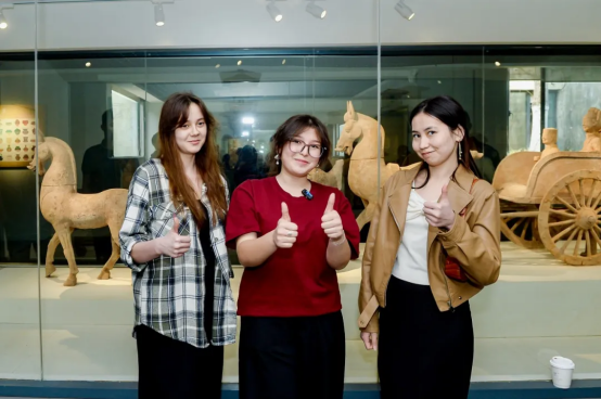 来自哈萨克斯坦的学生们在博物馆沉浸式体验布老虎制作,巧妙融合两国工艺特色。阿尔图同学感慨:“在圣旨博物馆亲手制作这些富含文化涵义的虎形手工,更能感受到浓厚的历史气息,突然理解了‘封侯虎’不仅是艺术品,更是中国人对美好生活的密码。"