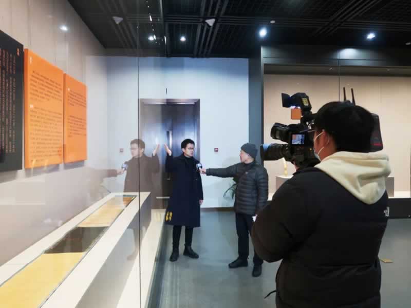 圣旨博物馆展陈部主任叶超然(上图)与徐州圣旨博物馆讲解员李海涛(下图)接受嘉兴电视台、南湖晚报等媒体采访