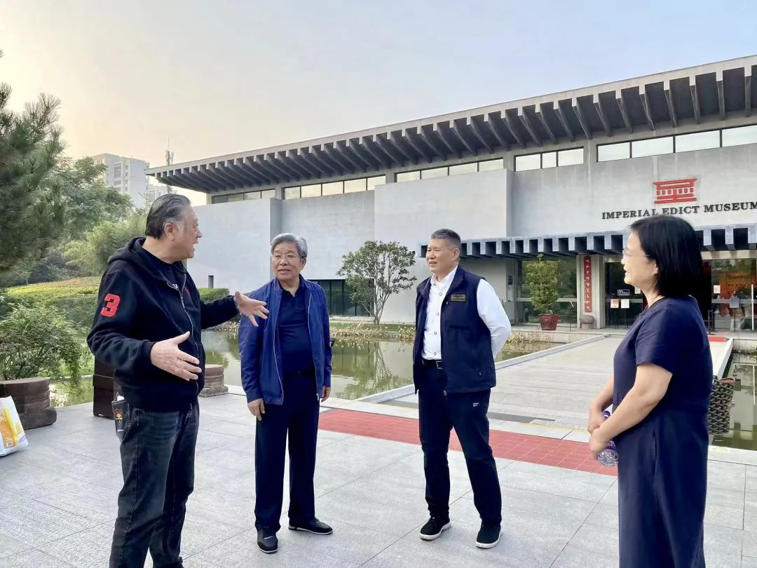 在交流学习期间,江宁织造博物馆一行人分别参观了圣旨博物馆和点石园两个展区,来访人员详细了解了我馆的展陈内容、精品文物的具体历史背景和故事,感受传统文化的深厚内涵和园林建筑南秀北雄的完美结合。